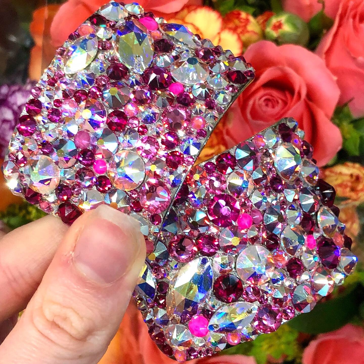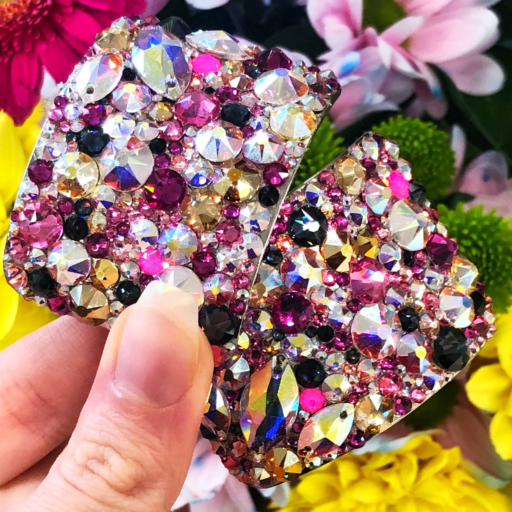 These buckles are hand stoned using flat back crystals and industrial glue making them strong and resilient. Each buckle is neatly finished with elegant lines of bling. No mess guarantee.