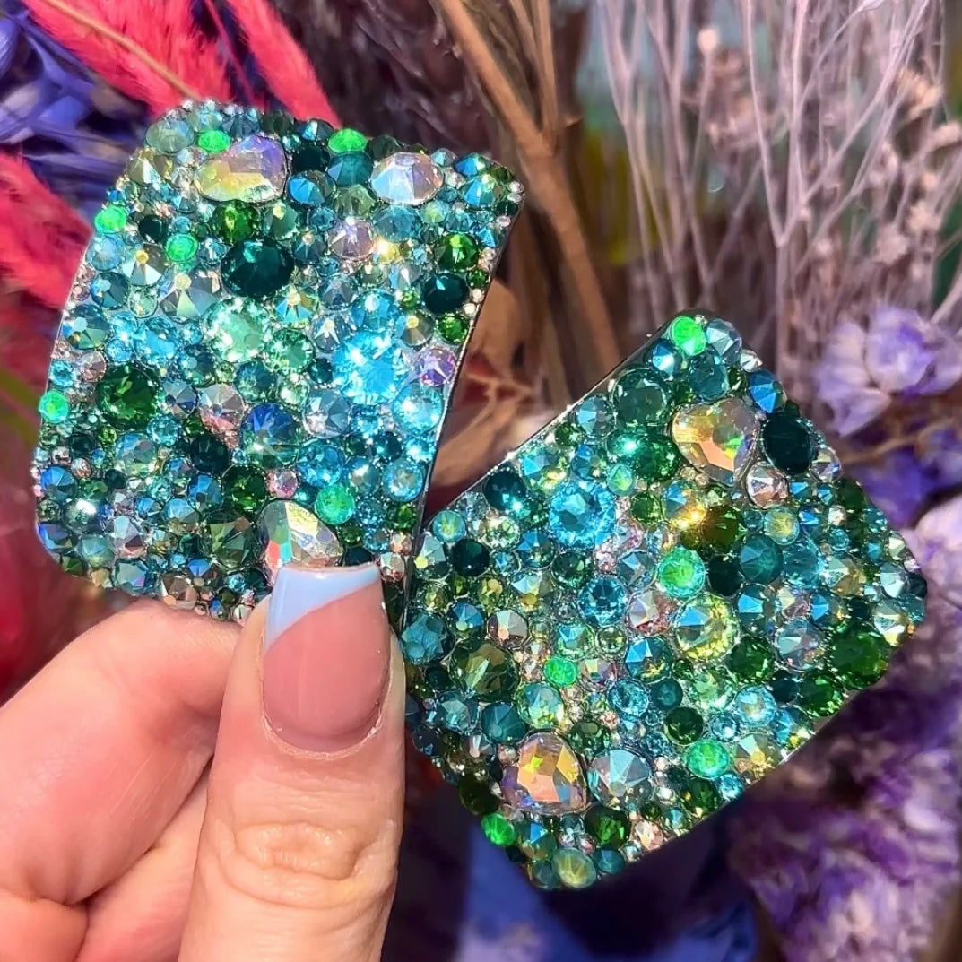 These buckles are hand stoned using flat back crystals and industrial glue making them strong and resilient. Each buckle is neatly finished with elegant lines of bling. No mess guarantee.