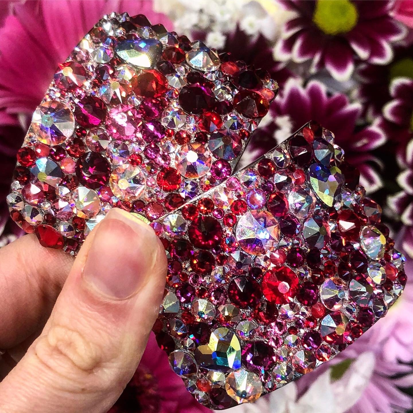 Out of this world! Match your dance dress with our Showstopper style, made by creating a tightly packed mosaic of flatback luxury crystals surrounding two beautiful heart shapes on each buckle.